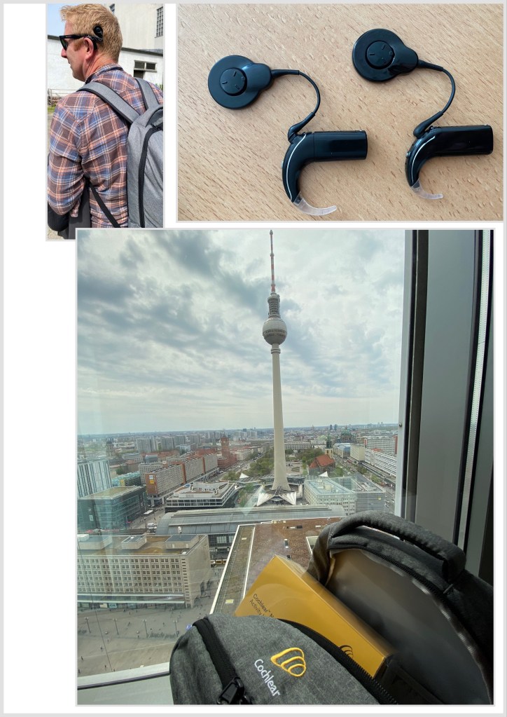 Back at the boarding gate on the way to Berlin again. It’s the first mapping session in a while (one got cancelled due to illness). I leave with a Cochlear bag of goodies and my new Nucleus 8. My wife comes with me for this trip. There are sniggers as we are told about the Mini Mic2+ or Mini Mick as it is referred to. Putting it on the table in social situations will greatly improve my hearing. There’s more sniggering when we discuss using the Roger On remote microphone.